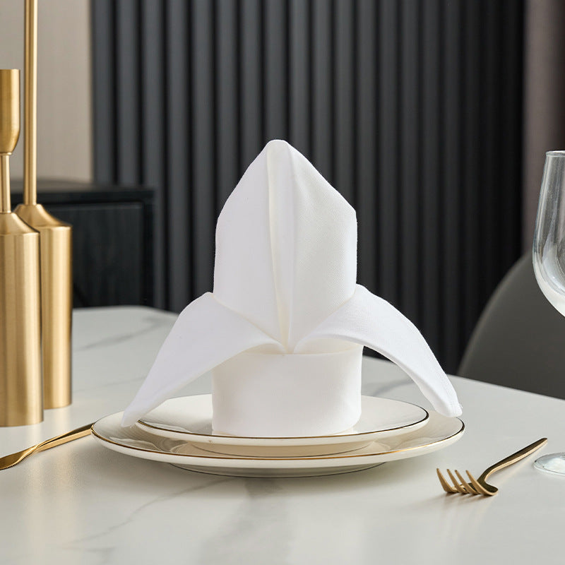 White Cotton Napkins, Folded Fower Napkins for Hotels, Western Restaurants and Coffee Shops, Thickened White Tablecloths and luxury Placemats HLCLN2808