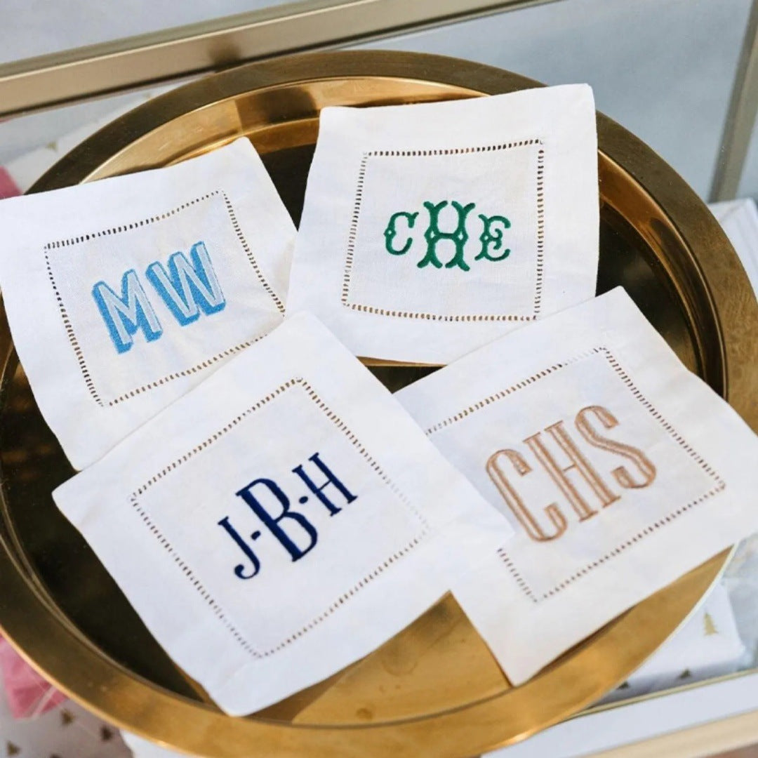 Upgrade your tableware with these elegant personalized embroidered linen cocktail napkins—a favorite choice on Amazon for those who value style, quality, and individuality.